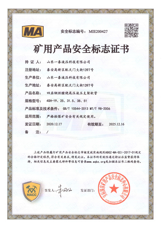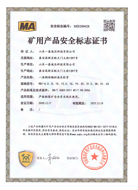 山東一泰液壓科技有限公司,坐落于山東省泰安市國家高新技術產(chǎn)業(yè)開發(fā)區(qū)配天門大街1397號,總占地面積6萬6千多平方米,總建筑面積4萬多平方米。公司注冊資金7500萬元,資產(chǎn)值3億元。公司始終專注于超高壓石油鉆探軟管、柔性節(jié)流壓井軟管、井控高壓耐火軟管總成、高端機械軟管、以及礦用液壓管體等配套產(chǎn)品的研發(fā)和生產(chǎn)。產(chǎn)品廣泛用于陸地和海洋石油鉆井、勘探、開采、輸送等領域;同時還為軍用系列、大型船舶系列提供了優(yōu)質(zhì)產(chǎn)品的供應保障和信任服務。